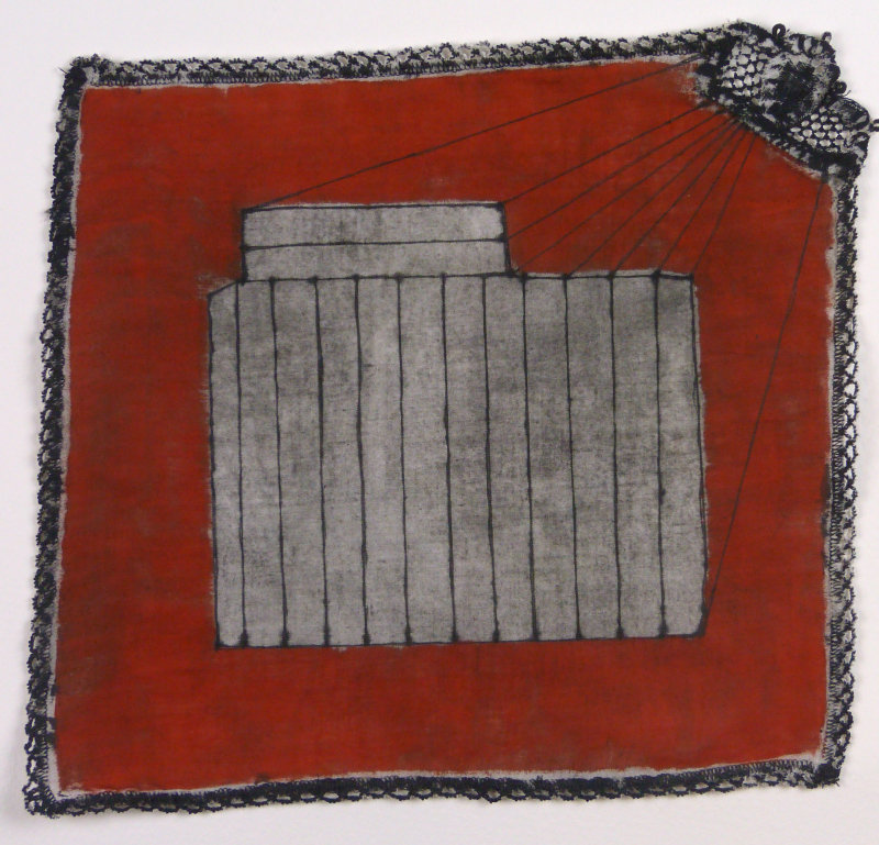 Cinzas de papel, acrílica e papel carbono sobre lenço