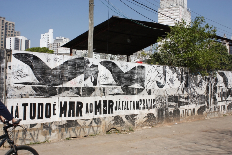 Trabalho realizado entre 2011 e 2013 no Parque Dom Pedro II, em São Paulo. As gravuras e textos foram construídos em módulos, formando distintas composições nas colagens. Foram realizadas 4 colagens ao longo dos 2 anos, que se transformaram ao longo do tempo alternando novas colagens e marcas deixadas por passantes e pelas intempéries.