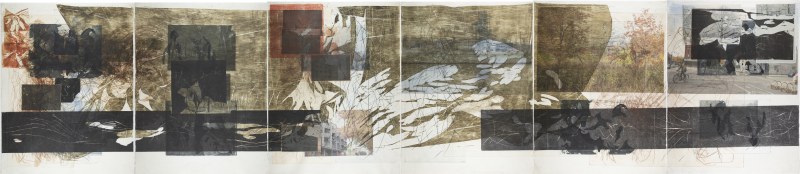 Ensaio visual composto por 6 folhas de 67 x 51,5 cm. Matrizes de madeira e metal e fotografias digitais realizadas entre entre 2019 e 2025. Impreso entre 2022 e 2025. Medida total com a justaposição das 6 folhas de 67 x 309 cm.
