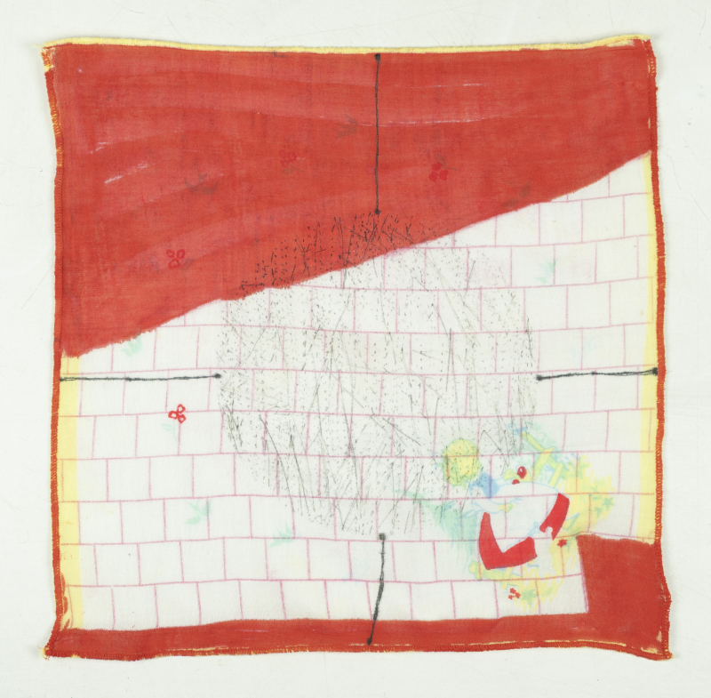 Acrílica e papel carbono sobre lenço
